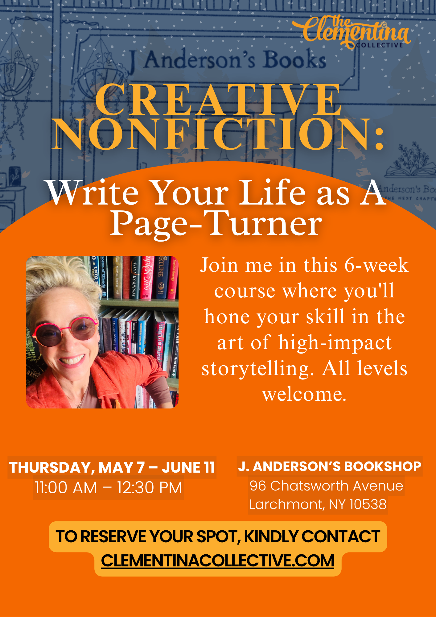 You don’t need a perfect draft—you need the right tools, structure, and support. In this 6-week Creative Nonfiction course with Clementina, you’ll learn how to shape your lived experiences into compelling, page-turning narratives.